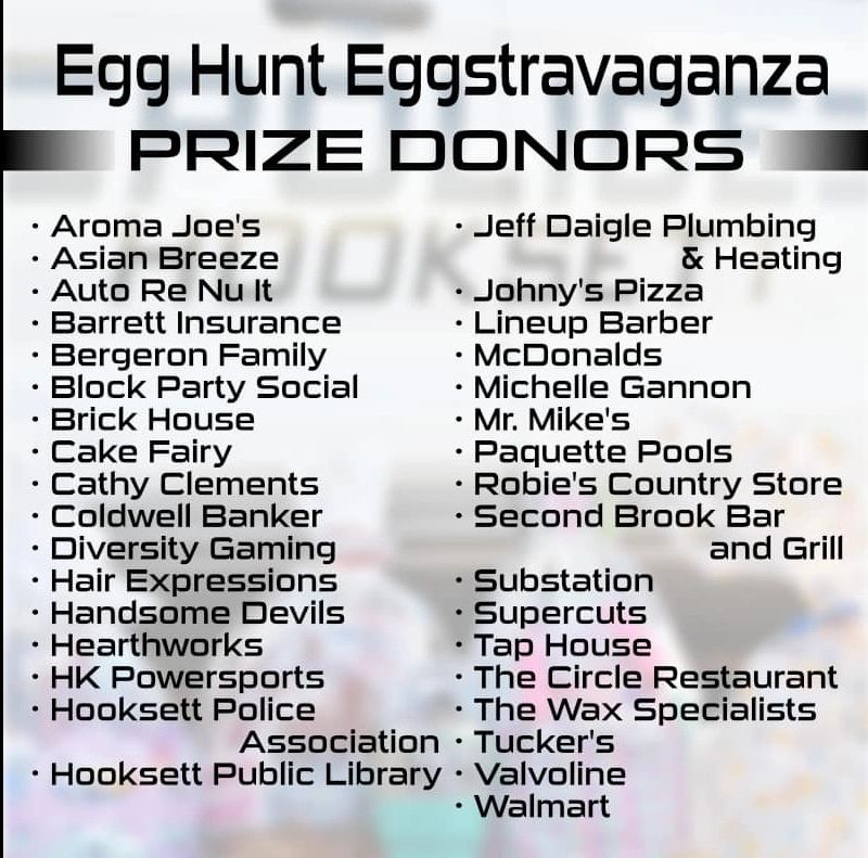 DONATED TO THE HOOKSETT EGGSTRAVAGANZA EGG HUNT!
